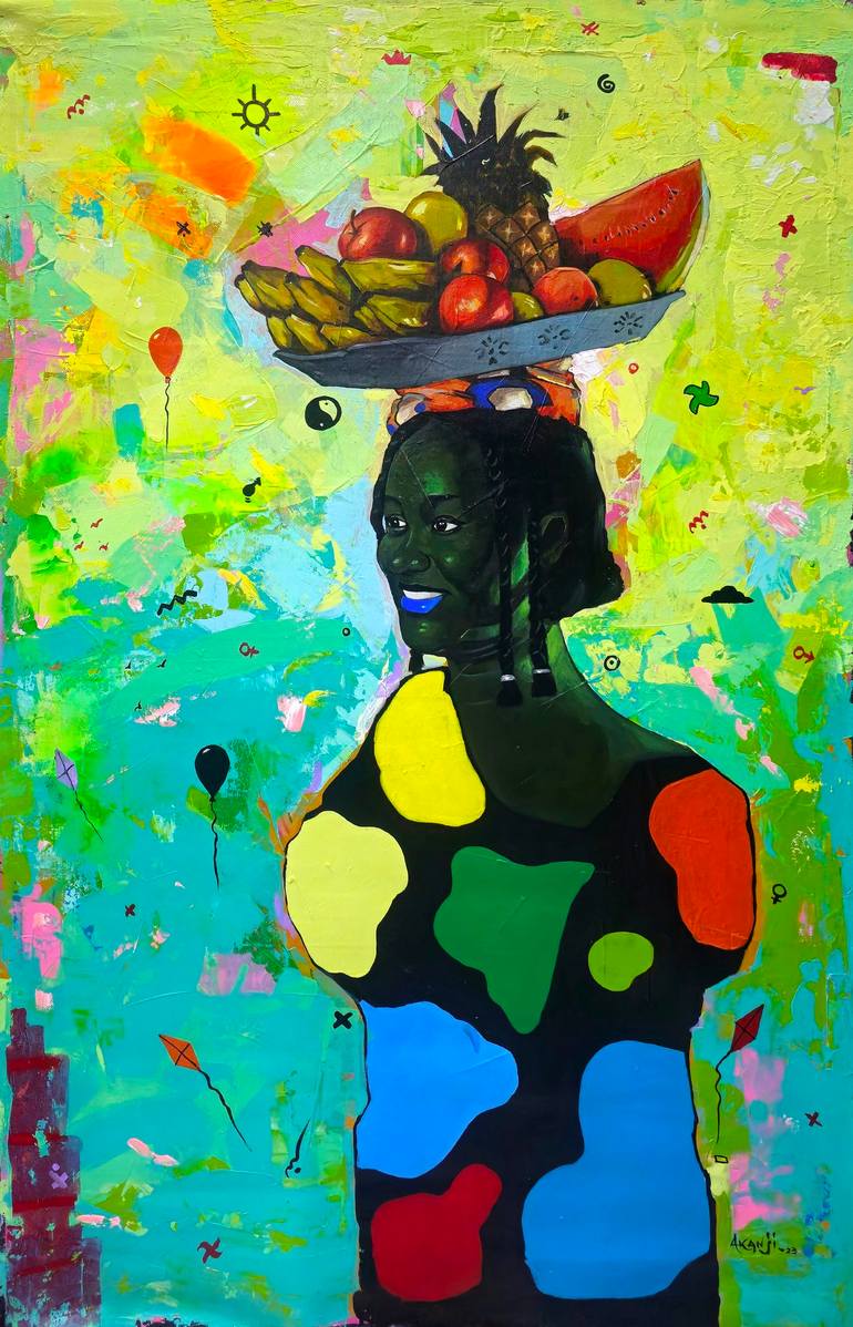 Akanji is a Black portrait artist who uses his work to celebrate the rich history and culture of West Africa, with a specific focus on the surrealism style. He re-imagines themes and narratives to create bold, fresh, and colorful images that spotlight the beauty and resilience of his creativity. By using art to directly embody the black beauty and nature narratives, Akanji aims to empower and inform viewers about his cultural heritage, and the beauty in nature- he hopes his vibrant paintings evoke feelings. In his work, Akanji incorporates textured relief on canvas, pattern and plain surface to explore his diversity and influence in his creative journey. Through this, he aims to show the beauty and diversity of his experience and its relation to other cultures.
