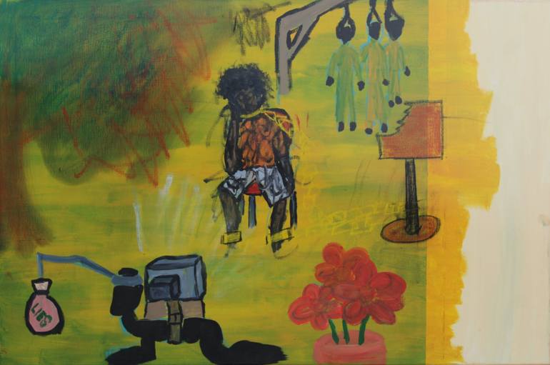 My name is Aaron but I`m also known as Juice. I`m a 23-year-old Swiss artist. I started off being a graffiti/street-artist, but then gradually moved to canvas and paper. I would describe my art as absurdist with elements of abstraction, and trough my background there still are certain street elements to my work. A big part of my style is the exclusion of hands, feet and faces, I do this because my art is all about truth and honesty and these are the things, body parts, we use to lie and trick people. I also enjoy the challenge of conveying emotions without the help of these body parts. The lines I paint/draw all over the people in my work represent their feelings and emotions, so therefore the more complex the grit of lines is the more complex the character. I truly feel like my art brings a breath of fresh air into the art world.