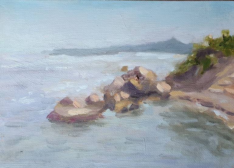 The painting was made during my journey to Cote d'Azur, France. I settled my easel direct on the sea shore in the shade and enjoyed nature, sea, summer, colors!