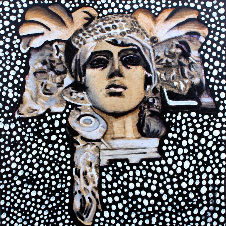 When painting, headdresses and crowns deify Kate Kelton’s subjects. She uplifts the Unsung Sheroes & Heroes, Patriarchy Smashers, Warrior Survivors, Silence Breakers, Philosophers, Truth-Tellers, Whistle Blowers and Thought Giants of all stripes. She paints her portraits cloaked in the garb of statues Ladislav Šaloun sculpted onto the train station that her great-grandfather, Josef Fanta, designed for Prague in 1901 - 1909. Apotheosis through a reclaimed, reapplied Art Nouveau. Sampling her own lineage, she transforms a historical body of work, itself a thing of lasting beauty; exchanging granite for graphite, plaster for paint. In Photoshop, she first combines the desaturated faces she's found, sourced or shot of her chosen subjects, with the black and white photos from her family and friends, of the statues in situ. Then she uses graphite, inks and acrylic paints and glazes to create the works on panel or canvas, literally uplifting and elevating her battle-weary subjects to the highest reach of architectural strata. 'Ancient and distant godlike beings, surveying a dying empire, trade places with the fresh blood of her subjects. The work presents a tactility against the digitized space, and represents a taking, an acquisition of power back from the tastemakers. Here, the mantle of the artist is above brand influencer, above internet commentator, above mere marketability. In their gaze is a warning, “Art is immortal. Come for me, why don’t you?”' ~ Micah Chaim Thomas "Kate's recent work is a matter of expansion through contrast - she is as ephemeral as her subjects are concrete architecture; she is structural when her subjects should slip through your fingers like too-fine sand. Taken as a whole, the works in her magnificent series Sentry are incredibly intelligent, but when looked at individually, you come to understand that these are statements of life beyond themselves. The series take embellishments of a Prague train station designed by her great-grandfather, Josef Fanta, and combines these with portraits of women who have stood against the sexual harassment and assault rampant in Hollywood. These women, like Kate herself, have suffered in the era where powerful men, every bit as immovable as the train station, wielded their power without check. The portraits emblazoned on architectural elements, they are marked against the edifice, every bit as permanent, and perhaps even more defining.