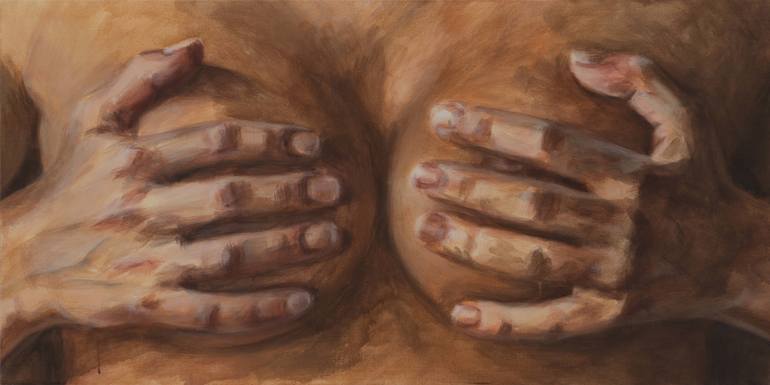 I was working with Nora for quite a long time. We created more than seven paintings together and Nora use to work as a model in my nude-drawing classes aswell. Nora offered me this very courageous pose. It is a position she would naturally choose when she is naked, so I decided to depict that moment...