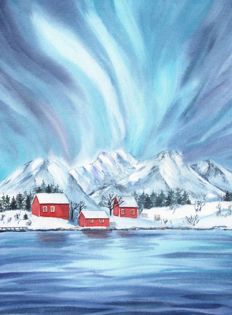 NORTHERN LIGHTS IN NORWAY by Svitlana Yanyeva 2024 SIZE: 40x30cm (11.8 x 15.7 inch) QUALITY: This original watercolor painting is my handmade unique artwork, painted on 100% cotton watercolor paper with finest quality watercolor paints, ensuring the colors do not fade over time AUTHENTICITY: Signed ...
