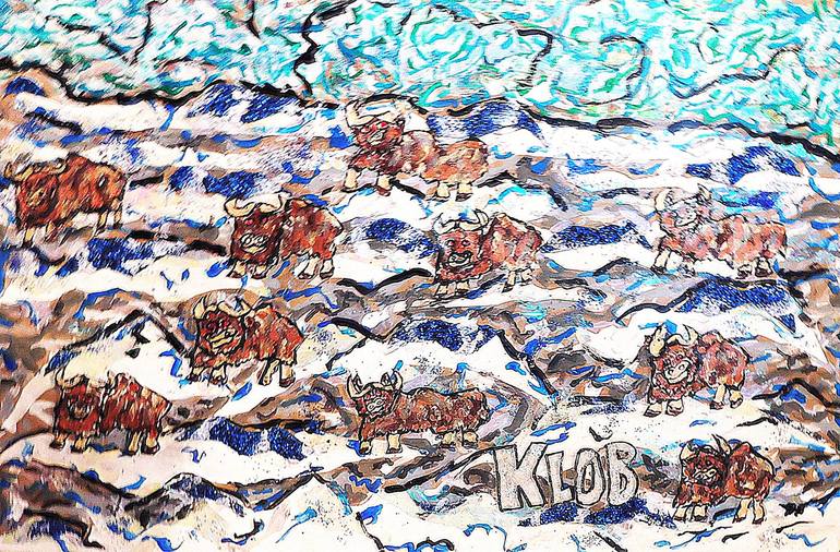 Northernmost Tundra - Last Herd of Musk Oxen evokes the majestic image of these resilient creatures in their arctic home. The artist masterfully employs a combination of acrylic, color, spray paint, airbrush, and gesso to bring this scene to life on hardboard, paper, plastic and other found objects....