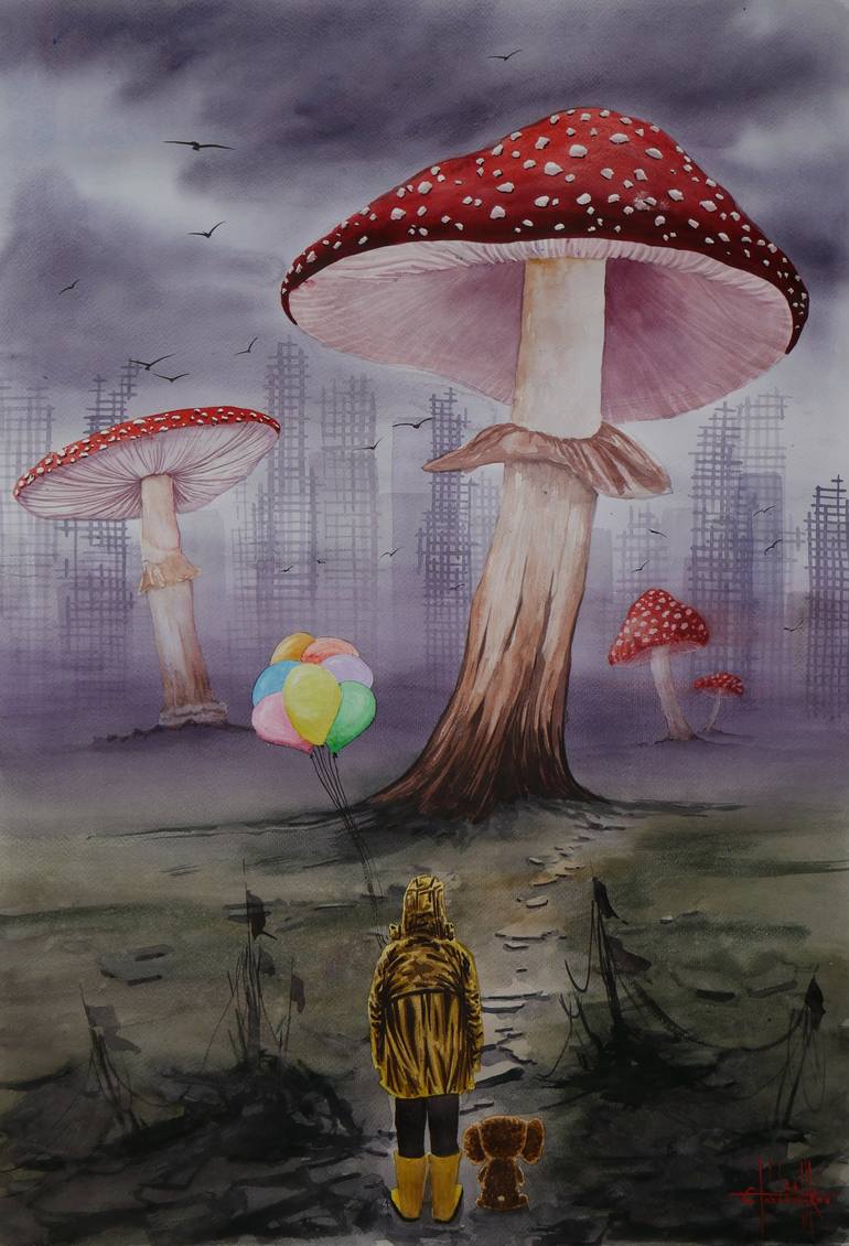 Eugene Gorbachenko "Not a nuclear mushroom" 2023 Watercolor on paper 72x50 One of a kind