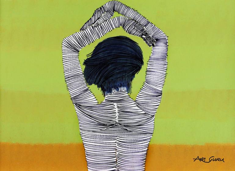 TITLE: Nude Stretching Peacefully By ArtGuru 9163A - Acrylic On Paper 100% HAND-DRAWN ORIGINAL SIZE: 3x4' MEDIUM: LatroArt CONDITION: Brand New / Excellent. Comes rolled in a tube. Signed Front and back with certificate of authenticity provided. ABOUT THE DRAWING: This piece depicts a woman resti...