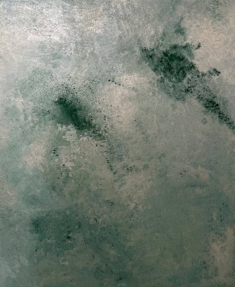 Try to imagine the view from plane's window, probably you will get something similar. This is an abstraction of an ocean view with a selections of my favorite colors: azure, celeste, aqua green. I worked with acrlylic colors, Malachite green pigment, which is a color in powder and smashed charcoal T...