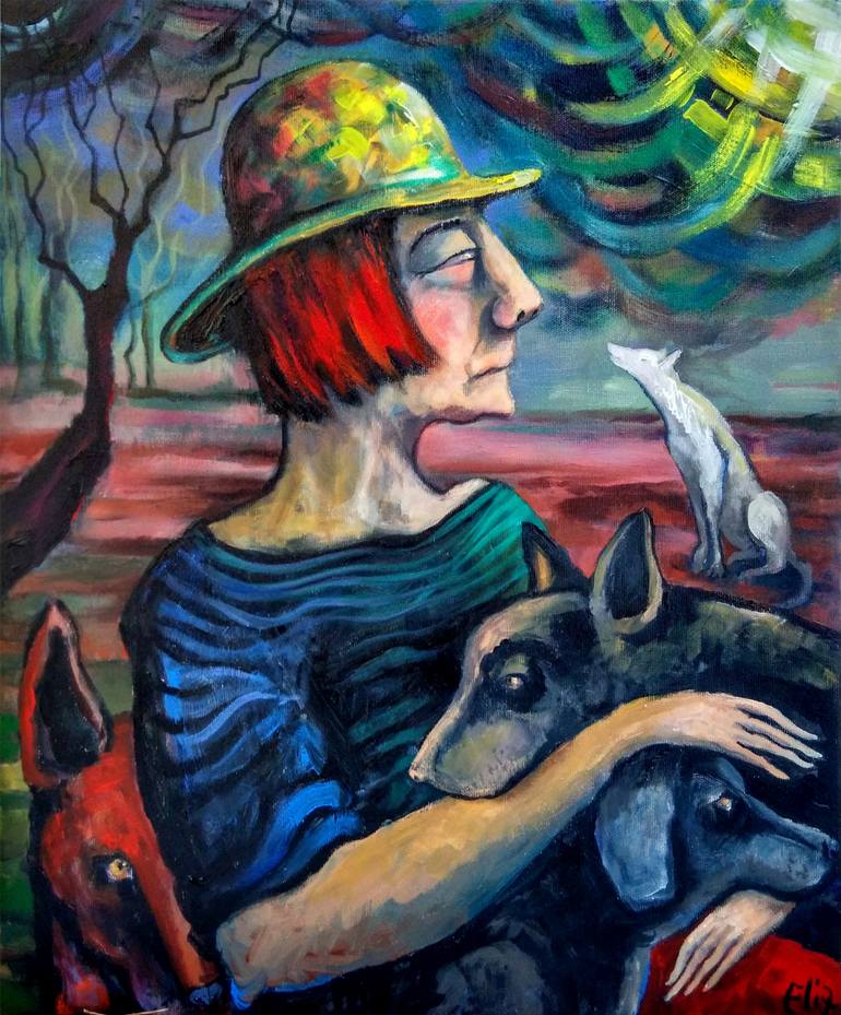 I make art for brainy people. I paint all my life. This is my way to communicate with the world. Instead of proper autobiography I prefer to let you know 10 facts about me. At least 9 of them are true :) 1. I was a psychiatrist. The problem is that I finished my psychiatric practice many years ago, but still arrive at diagnosis. 2. I'm an author of 10 books (fiction and poetry). The problem is that all of them are in Russian and only one is translated to English. 3. I'm a full time artist for the last 18 years. About 300 original artworks of mine are in private collections and museums in 15 countries. The problem is that now I want some of them back. 4. I have a beautiful old Himalayan cat. The problem is that veterinarians don't accept paintings or drawings instead of money. 5. I live 2 miles from the center of the Universe. The problem is that you can't hide yourself from the God here. 6. During 5 years I was a cat. The problem is to be a Human being now. 7. My son is a musician and my husband is a writer. I guess there is no need to explain what is the problem here. 8. I'm a senior lieutenant. The problem is that this army and even the state don't exist any more. 9. I get from 5 to10 injections and few pills every day. No problem. 10. I hate lies. This is a big problem. At this site you can support me and my art if you like it: