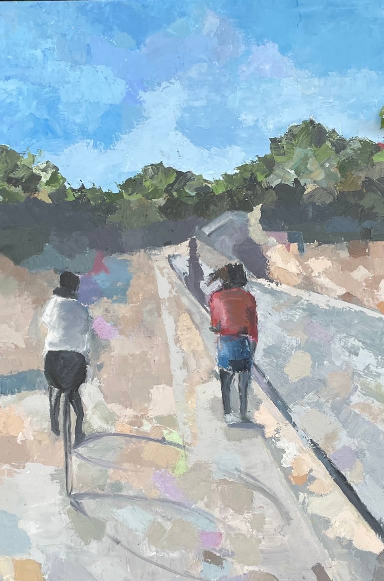 This painting represents a return to something resembling normal in the aftermath of the pandemic. I loved the image but was afraid it was a lot to tackle in my first palette knife, wax and oil painting. I was amazed by how it looked so different when I up close, painting it then it did when I ste...
