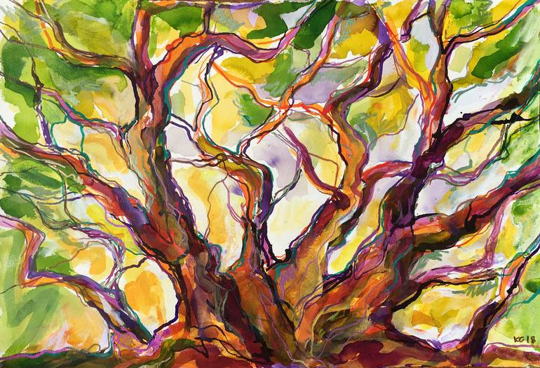 An old oak at a hill in Jutland. A place of peace and magic. Materials: lightfast ink colours and Fabriano watercolour paper