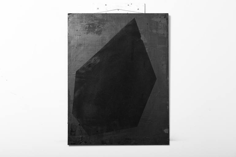 The Oblique series contains anonymous voids in the shape of geometric forms. Oblique I shows an glittering polyhedron of iron oxide on a glistening black field of acrylic paint and plexiglass The materiality of the this work examines the interplay of the built environment and human intervention wi...