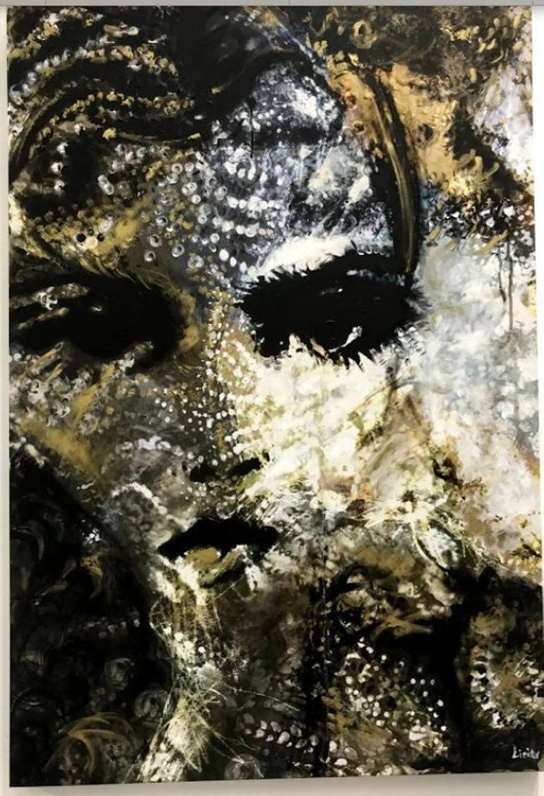 Artwork: Abstracted Portrait Painting, designed and created with ink, gold leaf, Photoshop and acrylics Picture: Mixed media on canvas (Canvas on stretcher frame) Ready for hanging Size: 76,5 x 112 x 4 cm Artwork is signed and comes with a certificate of authenticity. Buyers are also welcome to...