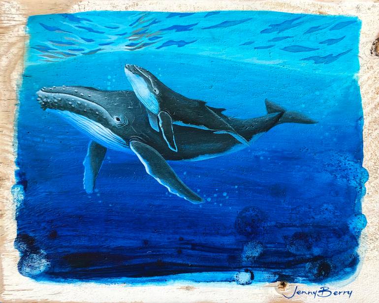 You could put an ocean between our love It won't keep us apart These beautiful lyrics inspired the title of this calming and serene humpback whale painting. Featuring a mother and calf nestled alongside each other the rich blues and teals are a nod to the nurturing relationship. Acrylic paints hav...