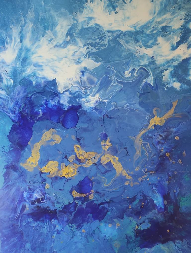 "Ocean's magnificence 2"is an exquisite abstract artwork that vividly captures the tumultuous beauty of a stormy sea with a rich palette of blues, transitioning seamlessly from the light, airy sky-blue hues at the top to the deep, mysterious navy shades at the bottom, creating a profound sense of de...