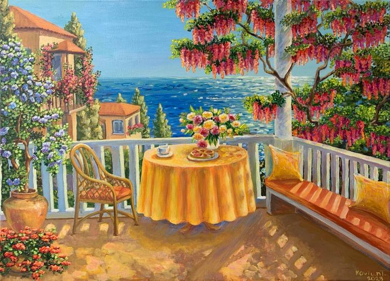 Technical specification. The painting is made with acrylic paints on canvas stretched on a stretcher. The edges of the work are painted as a continuation of the picture, so the picture can be hung on the wall without a decorative frame, which allows you to create the efect of a window, or non-i...