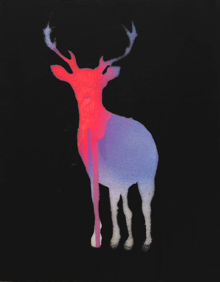 This painting is from my "Vanishing Silhouette" series. The graphic quality of this series reflects the vigor of nature and its persistence to survive. The bright and bold colored drips fade against the stark black background prompting evocative notions of what it means to exist. This is a real conv...