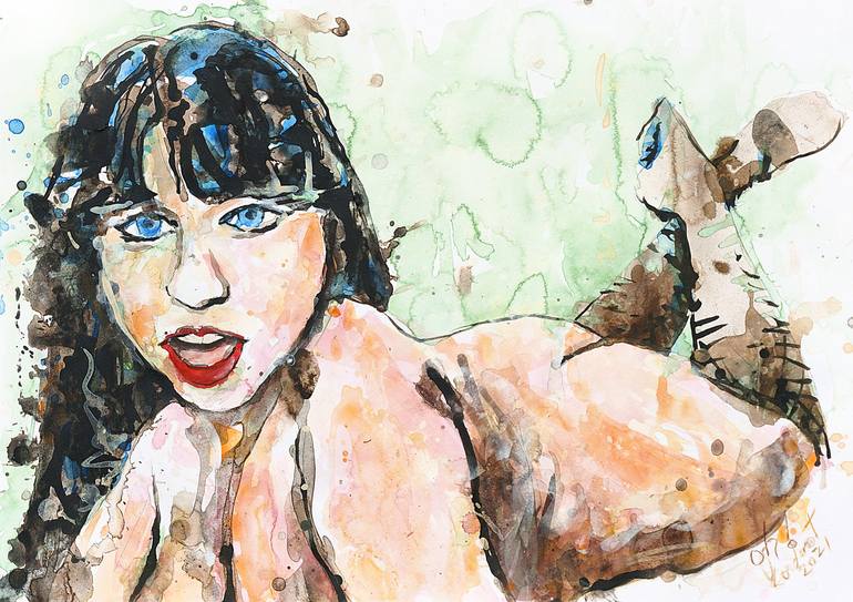 Thanks to Molly the cam girl for sharing your um, wonderful pictures from which I was able to create this idea. Here I want that pose done with expressive, loose brushwork. The figure always makes a good subject. The lines are fluid, the challenge is to put movement into the painting with colour and...