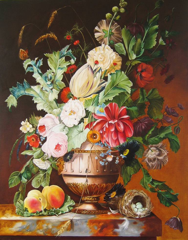 It's hand-painted. I love flowers and paint them with great pleasure. This copy of Johannes Hendrik Fredriks famous oil on canvas painting is a custom piece I did. This hand-painted work of art has vibrant colors and a realistic, classical presence. Title- Still Life of Flowers in a Vase (Johannes ...