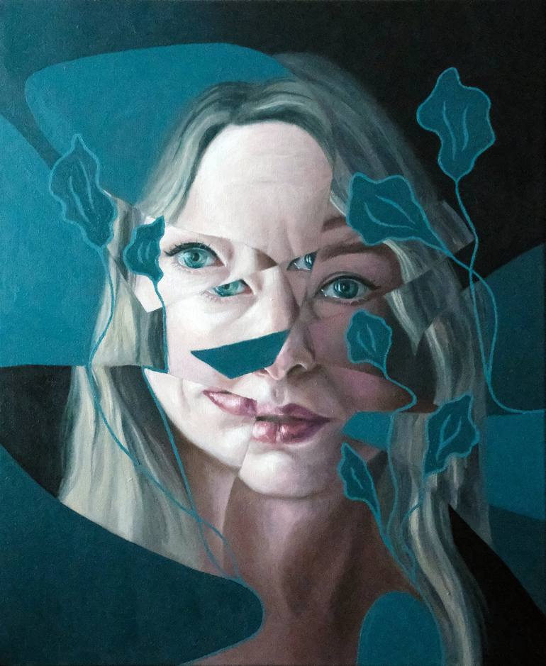 In this portrait from my Fragmented series I am experimenting with illustrative flat elements that add another dimension to the traditional oil painting. I chose to paint the portrait fragmented because I realised that we are born whole, but are starting to fragment as time passes, almost like gett...