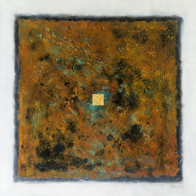 This work belongs to my "Golden" series and is done in a square format, which is a shape I use a lot in all my compositions. In the center there is a small golden square that gives unity to my collection and is submerged in a darker and copper-toned surface that has an antique and old finish, where ...