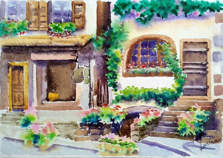 Old house doors, windows. Architecture details. Original watercolor painting. An exclusive unique gift for any special occasion and holiday. Interior decoration. Memory to your relatives, family and friends. Original present. Old buildings have a special aura, their beauty is beyond time. The a...