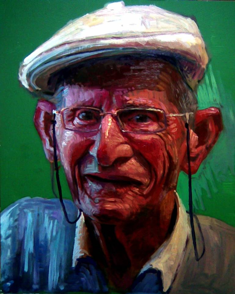 The portrait of an old man is my grandfather friend he inspire me to make a portrait of him the colours i used were bright and contrast from the point i was looking it turn out colourfull ant fun.
