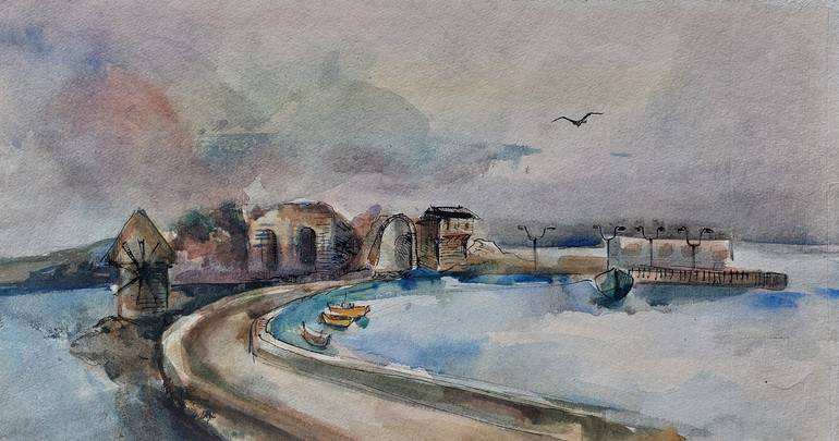 This artwork is compleated in minimalistic manner with vibrant light colors. It will appeal to who likes sea and summer theme. It is posible to make custom artwork similar in composition