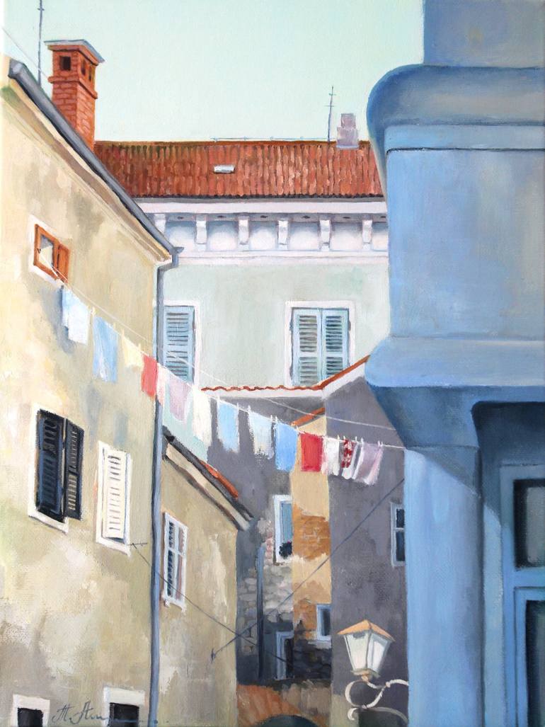 This is an old street of Rovinj, Croatia. The ancient city is filled with history. . The world around us inspires and offers topics for our creativity, you just need to take a closer look. The painting is signed and accompanied by a Certificate of Authenticity.