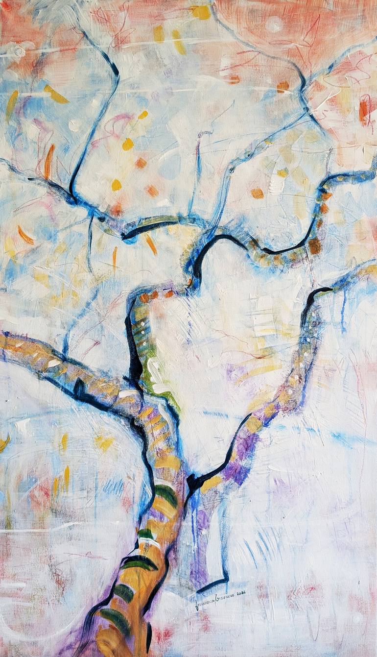 My preference for nature and the outdoors, drive me to natural colors and sunlight themes. Although not directly, my painting deals with environmental issues and the dangers of climate change, seeking a constant dialogue with nature, especially plant forms, on which will probably depend much of our future survival as human beings. Actually working also in product-adv, brand art, and greeting card designs as I'm very interested in growing my activity in the Art Licensing field. As a free-lance Illustrator I have been working for about 12 years for book publishers (children's books, textbooks), and design studios, in Italy and worldwide. I love mixing traditional techniques of illustration, and digital composition. Inspired by nature, its shapes, and colors. As a painter/artist I started painting large abstract canvases as little sizes on paper, about two years ago (2018), predominantly with acrylics. I like working more freely and painting as an artist makes me feel the work more mine!