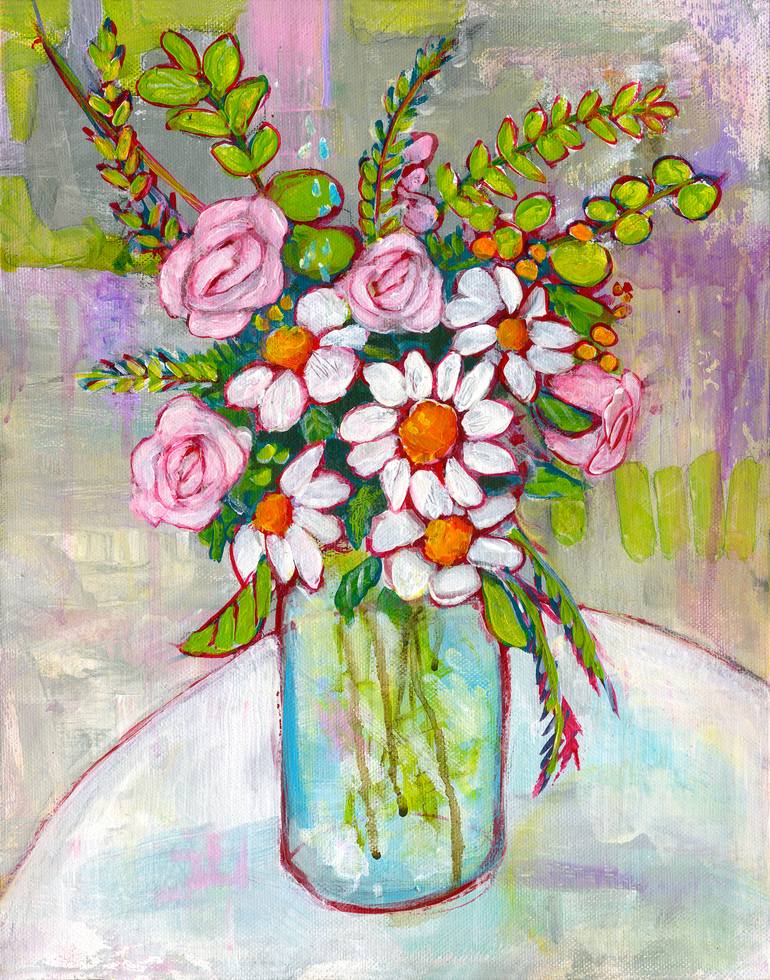 For the gardener at heart, a sweetly painted bouquet of fresh wildflowers flowers. You will love the lasting quality of this floral arrangement. It is a one of a kind original acrylic painting on gallery stretched canvas. The painting is signed and ready to hang on your wall.