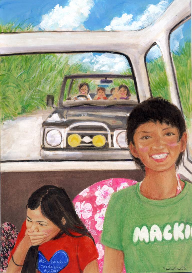 Born in Nagoya, Japan - grew up in the US and Japan. Graduated Musashino Art University, Tokyo - BA (Hons) in Visual Design and Oil Painting. While still at University, I started working in the TV industry in Art and Set design; and also appeared regularly on-camera as a singing KAMISHIBAI picture-storyteller for Channel 5 TV. In 1992, I started working as a freelance artist and illustrator. In between drawing for various magazines, advertisements, CD covers and commissioned work, I paint and draw to add to my collections for exhibitions. My main theme is 'Everyday Life' which I like to express in many different styles. I like to draw modern day versions of UKIYO-E (paintings of ordinary people and life in the EDO period). As I'm currently based in Japan, most of my work is 'Everyday Life of Japanese People' I want to capture moments and scenes of people enjoying themselves; Art that shows the Life and Vitality of People and Nature! I also love tropical islands such as OKINAWA, so I often paint these too.