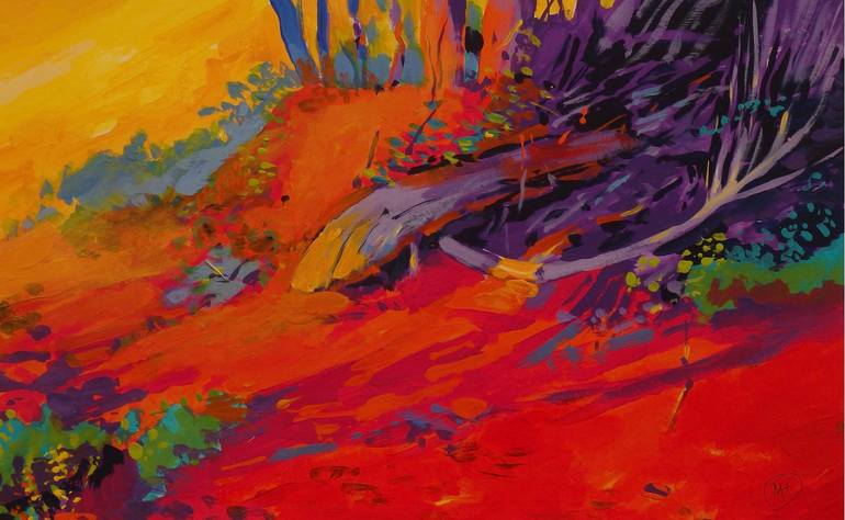 I am absolutely in awe of the beauty in Australian flora. The complexity and variety of plant life intermixed with the vibrancy of colours is an ideal opportunity for me to apply an observation technique to colours in nature. I learned this technique while studying at the Lodz Academy of Arts. The technique is based on seeing colour through an opposite and contrasting colour. The result is that colours boost each other, creating a dynamic display. My paintings are the result of three factors: what I see in nature, what I know about colours in nature, and what works best for the unique depiction in every painting. The ‘air perspective’ in my paintings, which exists in nature, is also a result of observation. The warm colours in first plan and colder colours in remount parts of landscape create a perception of space and distance. Observation of colours in nature is my great passion and underlies my desire for painting.