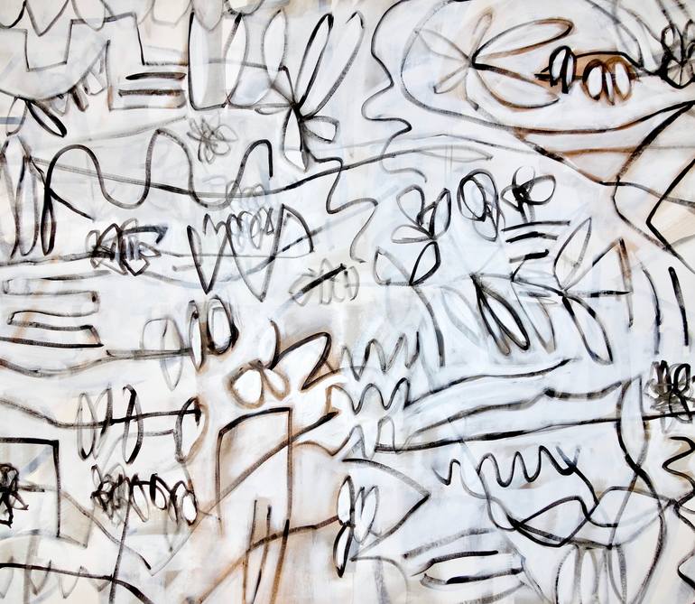 "On the Verge," is a modern, abstract expression of simple, gestural lines and movement to create a sense of depth and energy. Its warm brown, black, and white palette is calm yet striking. Please see additional photos for details. Full size is 72H x 83W inches, leaving ample canvas to stretch to ...