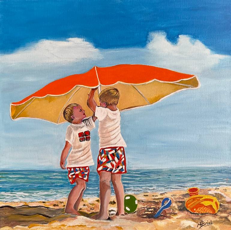Acrylic painting , Original Artwork of “ On the beach “ by Moira Briel This artwork was painted with a acrylic pallet on a 50cm by 50cm stretched canvas with a depth of 1.5cm on a acrylic canvas and a protective coat of (gloss) varnish has been applied to seal the acrylic paints and ensure the wo...