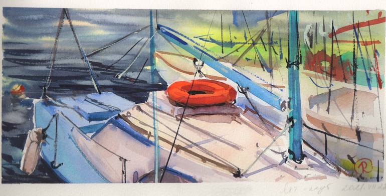 This is one more plein-air work from yacht club, made on July, 2021. I always inspired with boats, yachts, no matter how rich and developed are they. The play of light and reflections on the board are driving me crazy, actually! 'What I want viewer to see" - Saatchi asks me to describe!) I want you ...