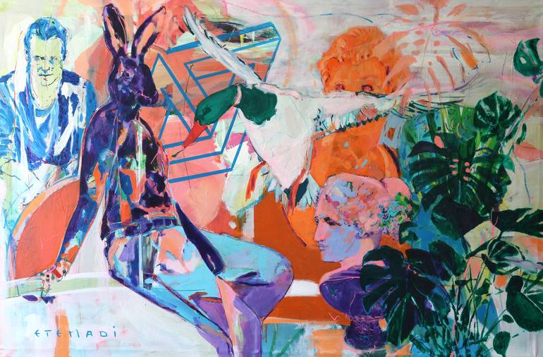 My art explores the intricate interplay between personal memories and nostalgia, capturing the essence of cherished moments while examining the contrast between our inner emotional landscapes and the external realities we navigate. Drawing inspiration from the fluid, dance-like movements of the 'Cobra' artistic movement, I have sought to incorporate elements of both traditions into my work. Gradually, I merged the composition of symbolic elements with free-flowing gestures and movements, creating a dynamic interplay within my paintings. This fusion has added a new layer of complexity to my art, forming a rhizomatic structure that continually evolves. While my pieces still feature familiar symbolic motifs—such as children's toys, merry-go-rounds, and animals—they are immersed in a whirlwind of lines and colors, imbuing them with vitality and energy. This free-floating composition serves as a bridge between the historical context of painting and contemporary expression. Within my canvases, figures and visual elements drawn from my childhood, imagination, and cultural heritage engage in dialogue with the very materiality of painting itself. Spaces teem with life as figures dance across the surface, yet blank areas speak volumes, representing moments of silence or absence. I empower my figures to soar in every sense of the word, adorning them with wings while allowing them to float amidst the dynamic composition that animates my canvases. Architectural forms intertwine with figures, blurring the lines between interior and exterior spaces, infusing them with both rigidity and irregularity. Yet, amidst the swift strokes and vibrant hues, a palpable sensuality emerges, evoking themes of childhood, eros, and mortality—an ode to the power of color and emotion. Through my art, I invite viewers to embark on a journey of introspection and discovery, where narratives unfold and emotions resonate with each brushstroke—a testament to the enduring vitality of the human spirit. Elham Etemadi holds a Ph.D. in Visual Arts in France. She began her academic journey with an undergraduate degree in painting from the University of Art. She further pursued two Master of Arts degrees in Fine Art: the first awarded by the University of Art in 2008 and the second by the University of Strasbourg in 2011. Since 2005, Elham has actively participated in numerous solo and group exhibitions across Europe, America, and Asia.