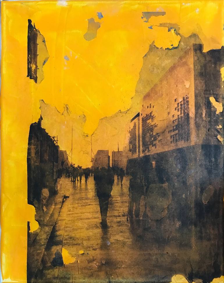 When I walked in Malta, I spotted this wonderful light and took a picture. Afterwards, I used this unique technique allowing me to transfer some of the picture on canvas before reworking on it. What you see is the result of this process. This men walking on the street is disappearing in the air to ...