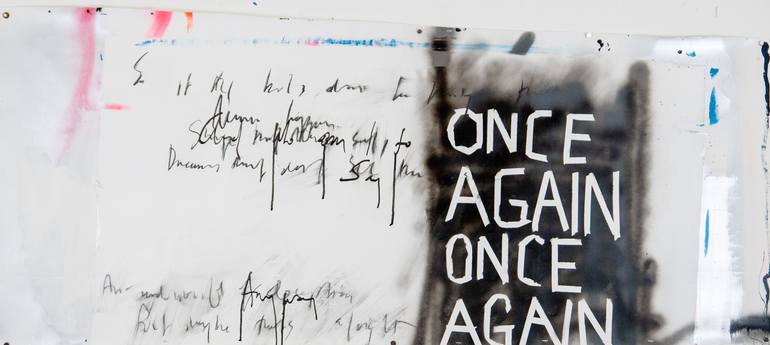 b 1971 UK Self taught artist working with many mediums but liking paint the best. Painting is just a language that I am more comfortable with, it has an honesty, it is what it is. My work is very unprocessed, direct, I don't see as I paint , just look at it sometime later, then start again or leave it alone until another time. I work with layers, building them up and scraping back, finding stuff I had forgotten about, the painting starts to get interesting, to develop its own past. The word paintings write themselves with no restraint, if I'm not sure I keep writing over, but ultimately the words, however buried, have been said.
