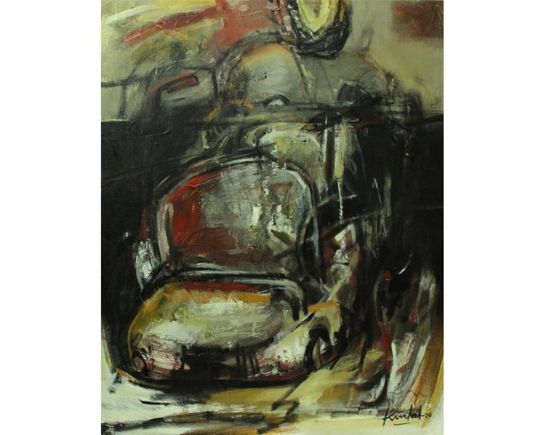 Aptly titled, the painting portrays to hustle of life! We struggle every day, on the busy streets slowly moving one behind another to reach our destinations! The painting is in shades of black, the artist seems to have created a somewhat abstract painting with this piece! A painting portraying the r...