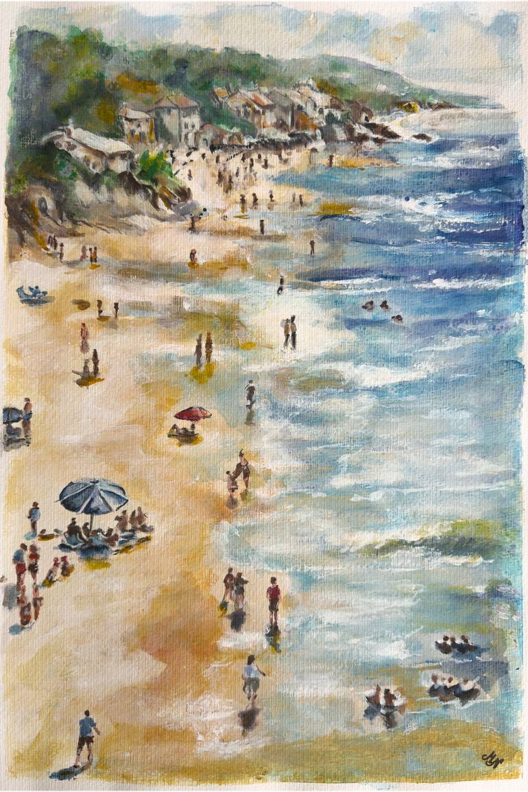"One Summer Day on the Beach" on the Mediterranean Sea. I used mainly watercolor, acrylic paints, and ink to improve my effect. Painting is on the highly textured aquarelle fine art paper