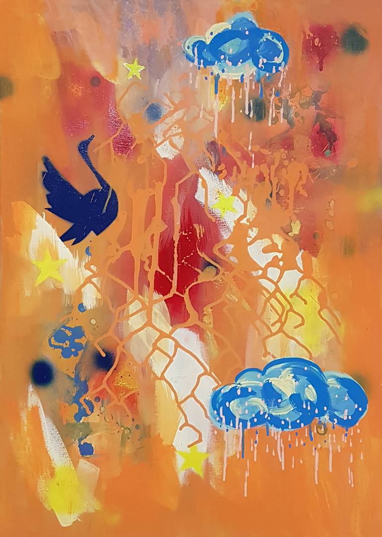 I am inspired by Sky, Universe, Time, Chaos, and many artist included Fiona Rae, Picasso, Pollock, Matisse, Anish Kapoor...and by electronic music. I hope the viewers will feel fascinated by many details and gestures what is happening on canvas. This is how I imagine fragments from my travelling i...