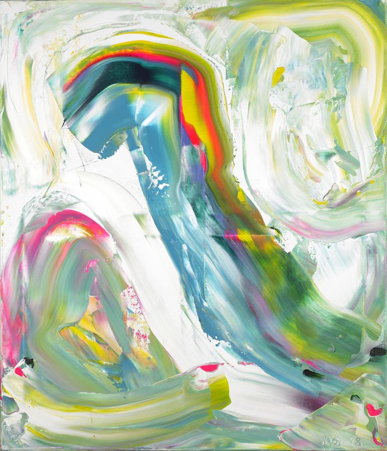 Norwegian abstract artist Marit Geraldine Bostad takes viewers on a journey to inner realms, erasing the line between the conscious and the subconscious. Drawing inspiration from psychology, her canvases become tangible manifestations of her psyche and present a way to disconnect from an externally controlled world through pure abstraction. Breaking away from the constraints of imposed themes and values in figurative representation, Geraldine describes universal archetypes that transcend the particular conditions of her personal life. This sets the scene for the audience to bring their meaning to her work. Geraldine’s technique involves the direct application of acrylic paint, using tools that seldom include a paintbrush. By combining tone tone-to-tone pastels with sparks of fluorescence, the artist carves out a distinctive approach to traditional Nordic Colour Theory. Marit Geraldine originally was an Art Director, with 10 years of experience working on visual projects in film, illustration and concept building in Oslo. Alongside her commercial work, she has practised painting, as a way to release and unwind. In 2009 Geraldine left her career in Art Direction to pursue her painting full-time. She has exhibited her work in Oslo, Dubai, London, New York and LA - and has received substantial acclaim from curators as well as galleries throughout Europe and the US, for her vibrant, strong and contemporary abstract paintings. In April 2017 Rebecca Wilson, Chief Curator and VP, Art Advisory at Saatchi Art picked Marit Geraldine as one of her "4 Must-See Artists" at TOAF London, out of 130 emerging artists. In 2020 Marit Geraldine was honoured to be among the 30 shortlisted artists chosen for the Ashurst Emerging Artist’s Prize in London. In May 2022, Geraldine was the face of the Affordable Art Fair Hampstead fair campaign, which could be seen all over London. She continues to work with galleries and institutions in London, New York, Dubai and Paris. In Norway, the artist recently had three major solo shows with KHÅK Kunsthall and Gulden Kunstverk (2021-2023) ARTIST STATEMENT: Through a series of paintings, Marit Geraldine Bostad investigates the themes central to her artistic research, the inner psyche, memories and human interaction. She blends her colours by pouring paint directly onto the canvas using various tools, seldom using the paintbrush - to create diverse, versatile effects with broad expressive strokes.