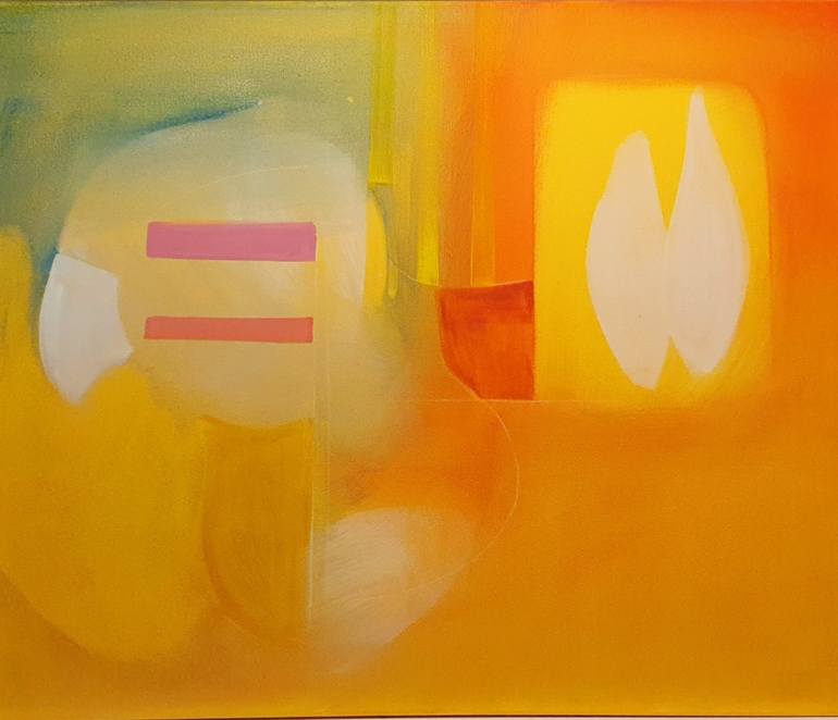In the painting 'Orange Yellow Blue Composition I have used complimentary colours to produce a bright and striking piece. My work is influenced by Cubism, Orphism, Synchronism and Colour field painting. The painting is framed in a white floating frame which really compliments it. Title: Orange Yell...