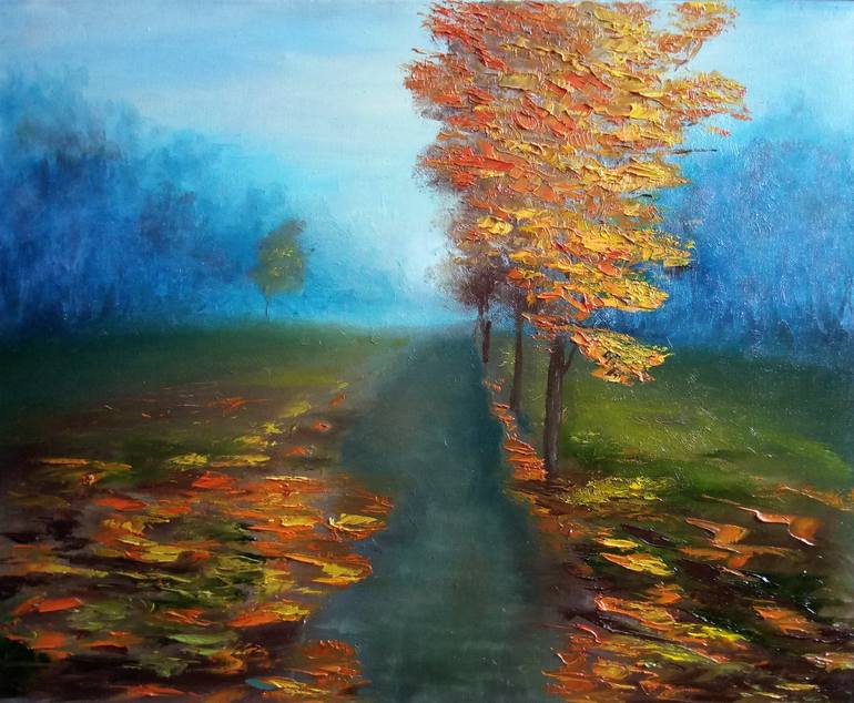 Fog and vapors in the air create a mysterious state of nature.Beautiful yellow autumn.