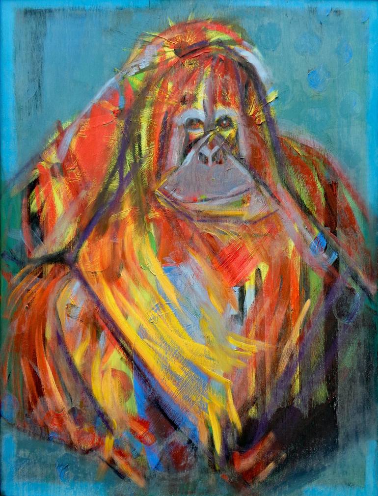 A lively and intelligent orangutang pondering the meaning of life.