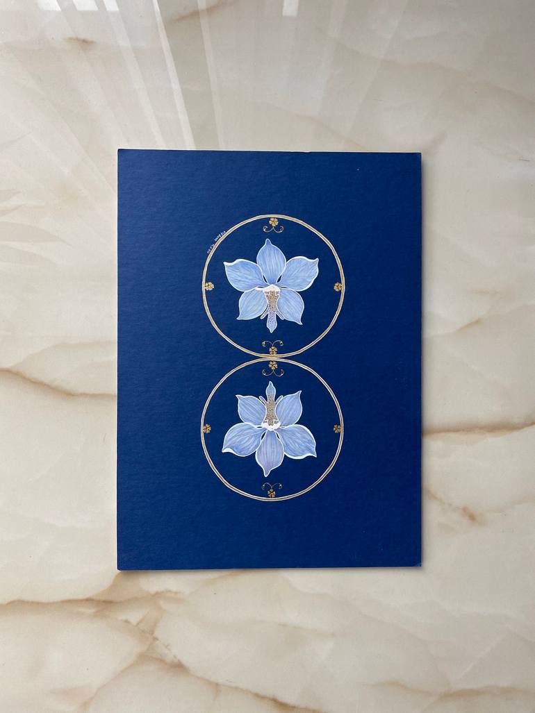 In this work, I brought a modern touch to the orchid flower using the traditional Şukufe and tarama techniques of the Tezhip art. The piece includes details painted with real yellow gold. I hope you will like it.