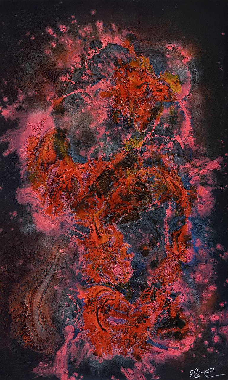 I believe the most powerful works of art are spontaneous and unexpected. In this sense and to completely disregard any instilled cultural references, I reject any influence, even mine...and let take over any visual crystallization that will appear suddenly through my actions wich must absolutely not be predetermined! Consequently, this process has to be spontaneous, short-lived and free of preconceived ideas. In concrete terms, this point of view pushes me to use industrial or natural materials, recycled for the most part, allowing me to be intuitively guided through my choices. I randomly add stones, crystals, copper or some genetic backgrounds, in accordance with the vibrational nature of the painting which becomes the inherent demonstration of my journey...scattered with presences waiting to come to life!