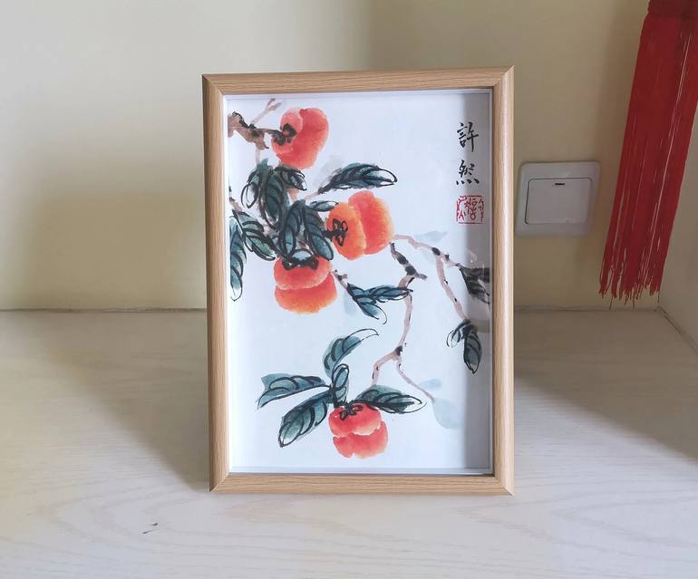 Item No. DD1009 Handpainted Original Chinese painting,Traditonal Chinese Persimmon Painting, Home Decoration Frame Size: 23x32 cm Paper Size: A4-21*29.7cm In Chinese culture, the persimmon is often regarded as a symbol of auspiciousness, associated with the positive wish "事事如意" (shì shì rú yì), w...