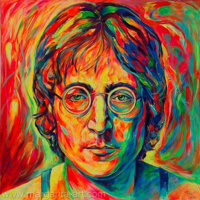 John Lennon Portrait. Original acrylic painting with neon pigments. Textured surface. No watermark on the original. Bright neon colors in daylight.