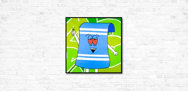 Original Graffiti canvas by SOHPE. 2021 "Cartoon Series" - You're A Towel - Actual size is 40" x 40" (101.6 x 101.6 cm) with a 2" border (5 cm) around all four sides for stretching on wood. Stretched size is 36" x 36" (91.4 x 91.4 cm)// UN-stretched size is 40" x 40" (101.6 x 101.6 cm). The whi...
