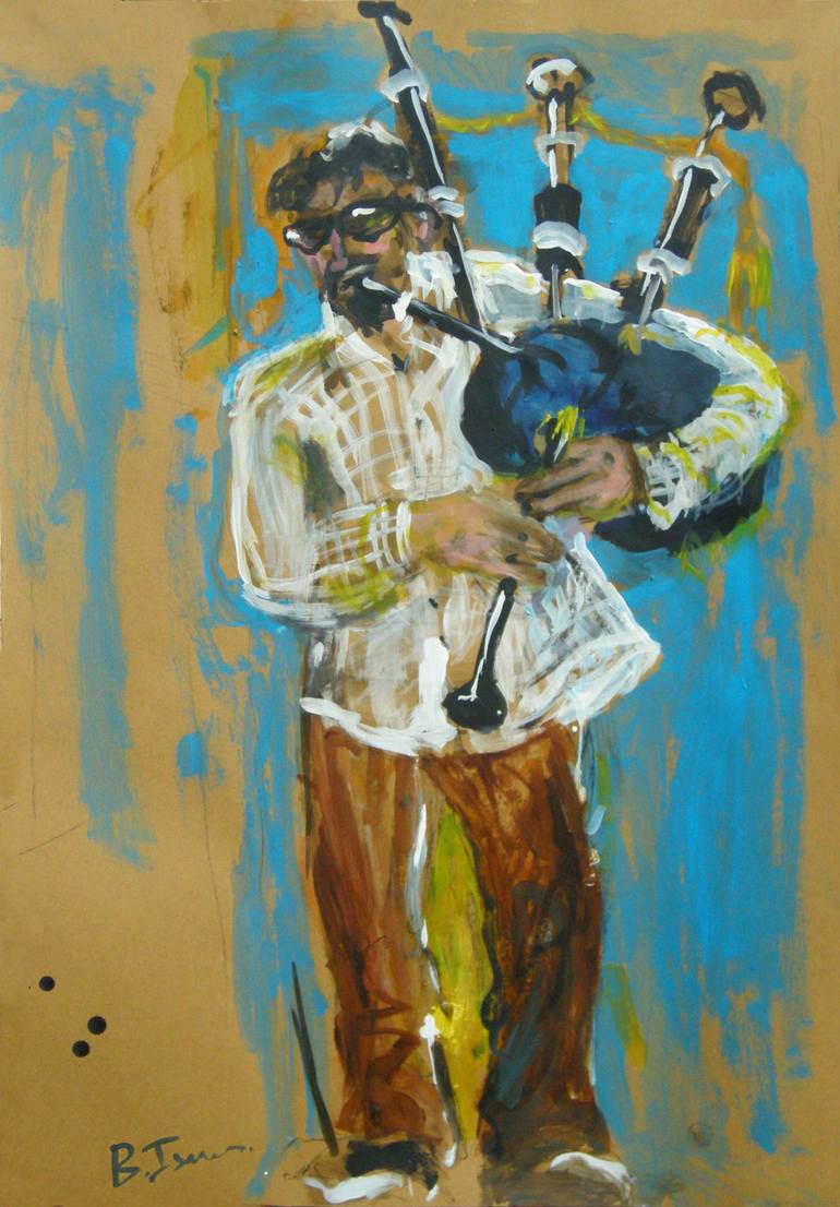 From the series "MOMENTOS MUSICALES" exhibited at the Palacio del Gobierno in Oaxaca de Juarez, Mexico. Can you believe I met the only bagpipe player, in the whole of Mexico?!! He was outside the Santa Domingo church , and so I he came to my studio to practice one day, and this was the result! T...